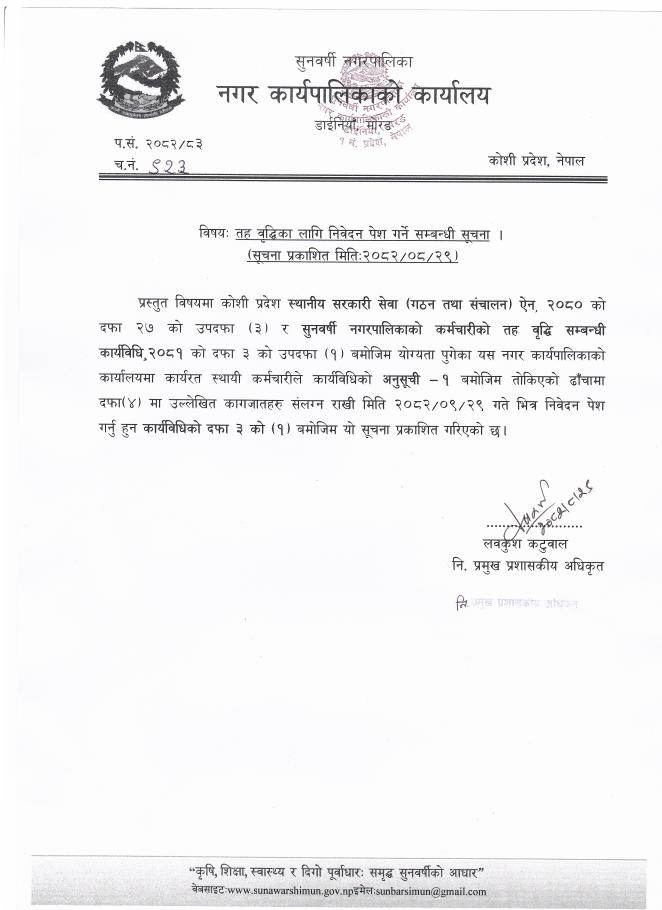 SUNMUN-26 तह वृद्धिका लागि निवेदन पेश गर्ने सम्बन्धी सूचना ।