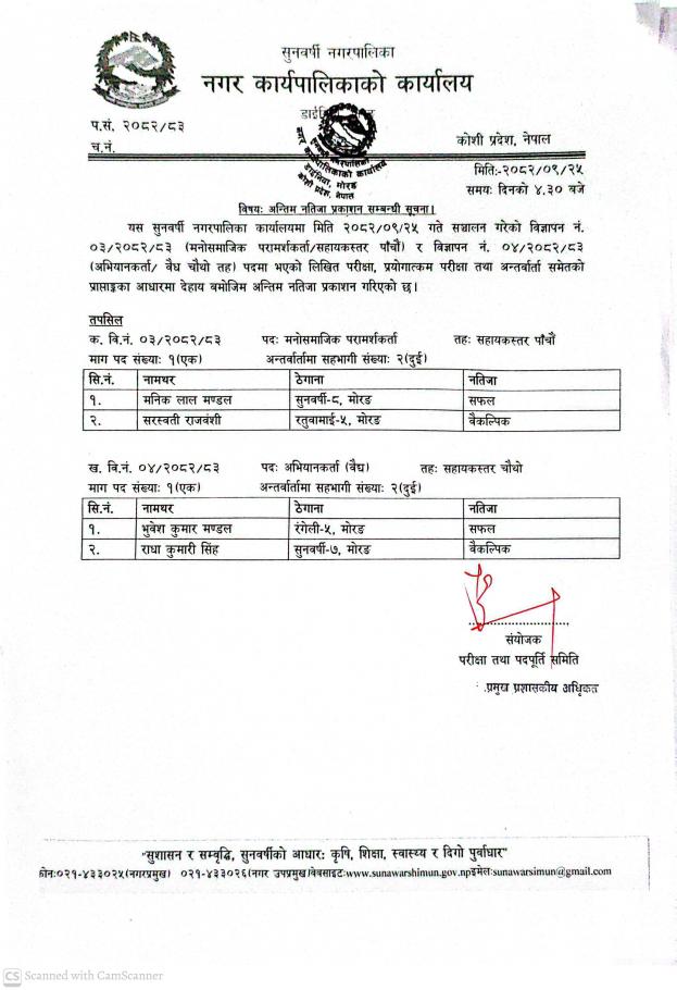 SUNMUN-31 अन्तिम नतिजा प्रकाशन सम्बन्धी सूचना ।