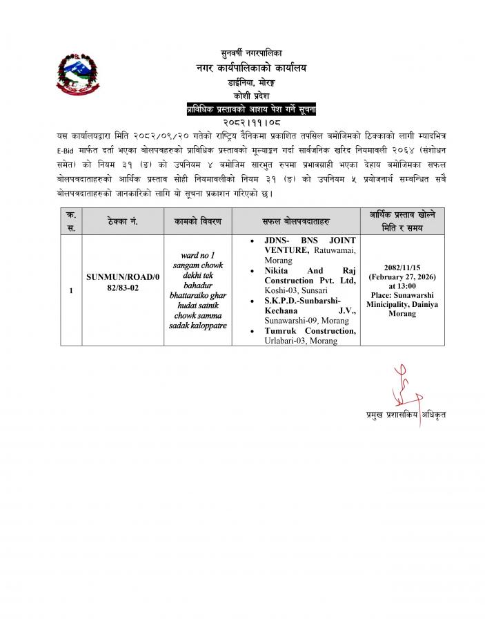 SUNMUN - 51 प्राविधिक प्रस्तावको आशय पेश गर्ने सूचना।