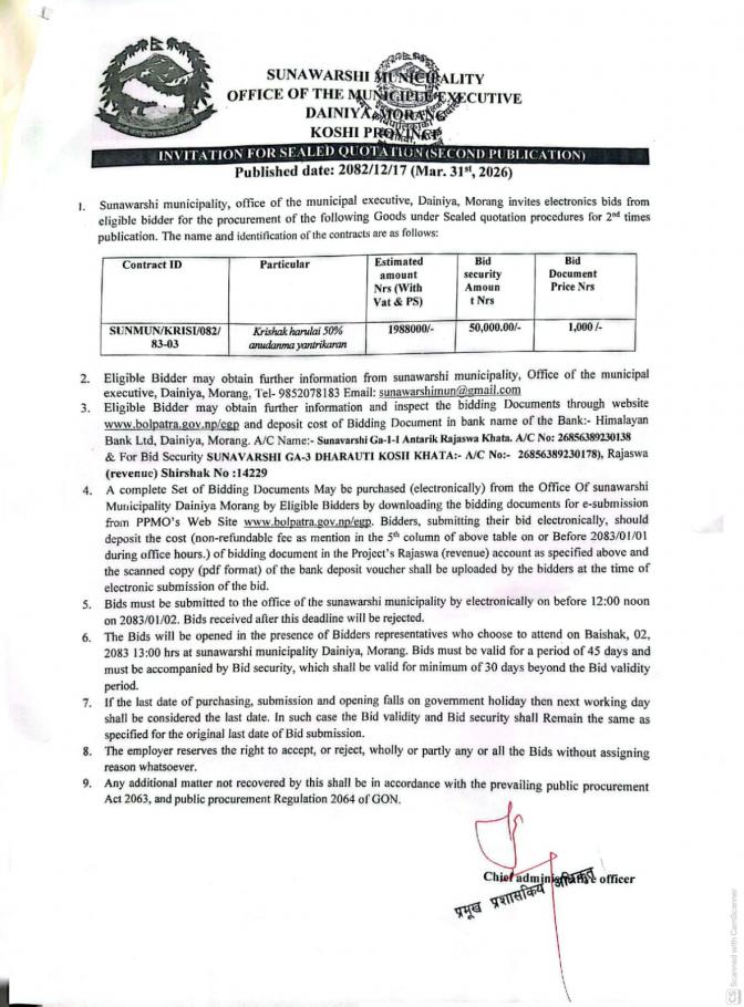 SUNMUN-62 INVITATION FOR SEALED QUOTA FION (SECOND PUBLICATION)