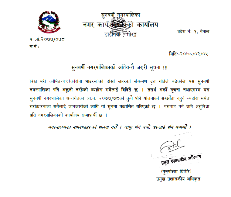 SUNMUN-76 सुनवर्षी नगरपालिकाको अतियन्तै जरुरी सूचना !!! मिति : २०७८/०२/०५