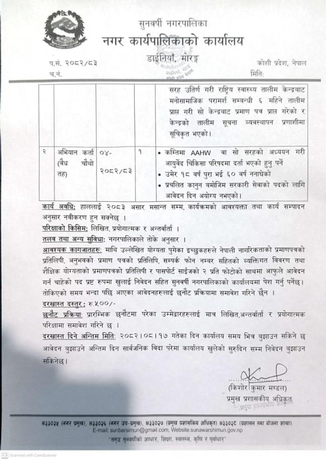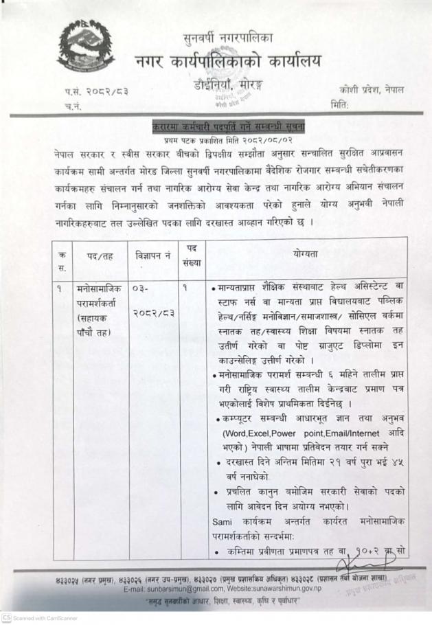 SUNMUN-23 करारमा कर्मचारी पदपर्ति गर्ने सम्बन्धी सूचना